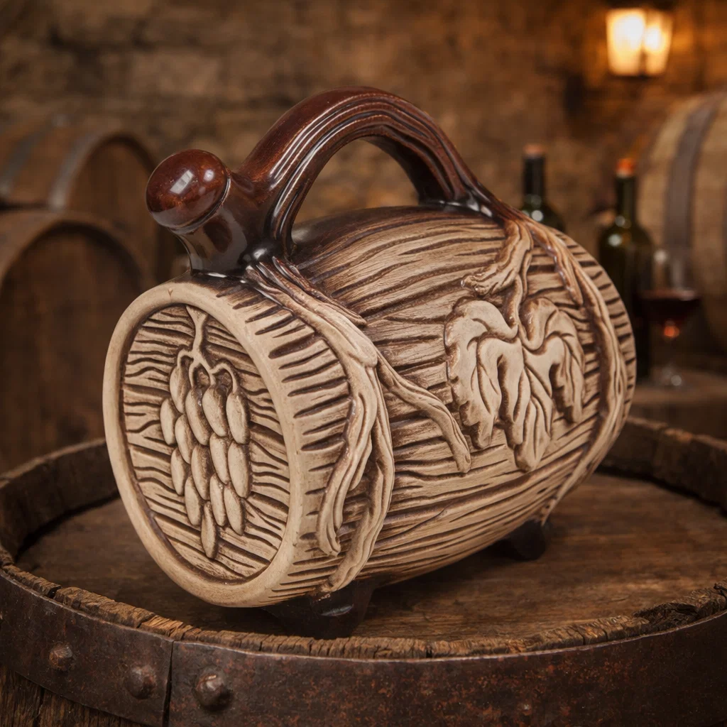 Butoiul este realizat din ceramică, un material recunoscut pentru compatibilitatea cu lichidele alimentare și rezistența în timp. Ceramica nu reacționează chimic cu vinul și ajută la menținerea caracterului natural al băuturii.
