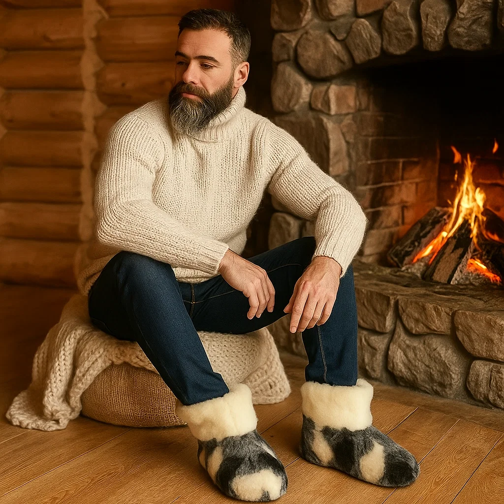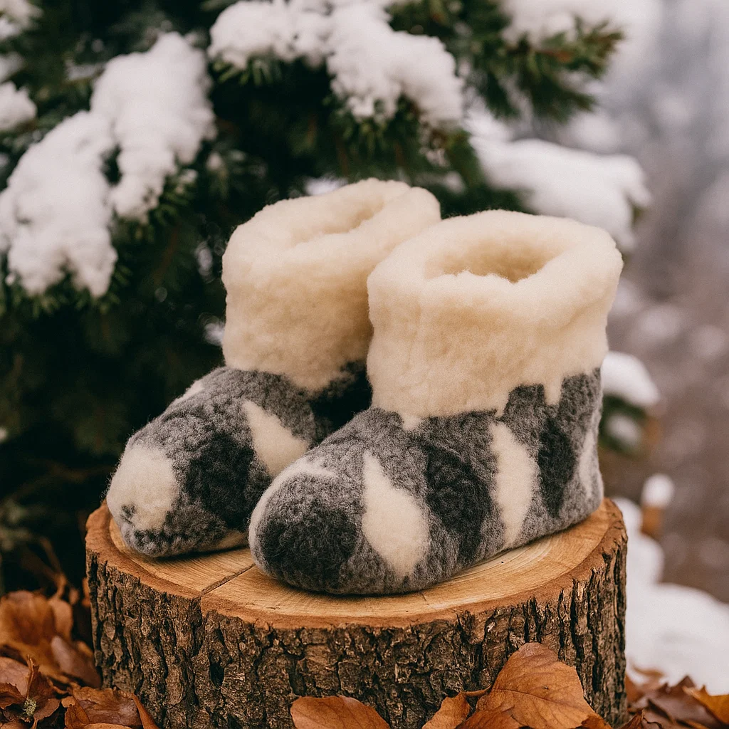 Botoșeii din lână de oaie pentru bărbați sunt alegerea ideală pentru sezonul rece. Realizați din 100% lână naturală, aceștia oferă un confort deosebit, păstrând picioarele calde și uscate. Perfecți pentru casă, cabane de munte sau ca idee de cadou tradițional.