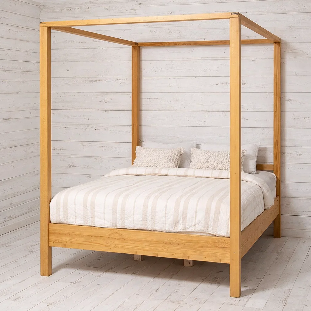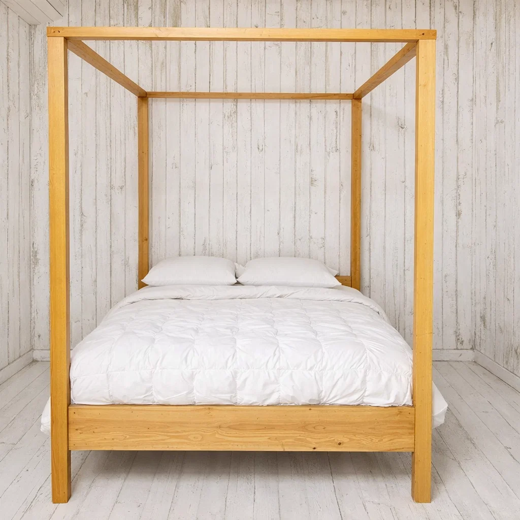 Pat baldachin 180x200 cm din lemn masiv de brad, cu posibilitate de vopsire la cerere, într-o gamă variată de culori Compatibil cu saltea standard de 180x200 cm