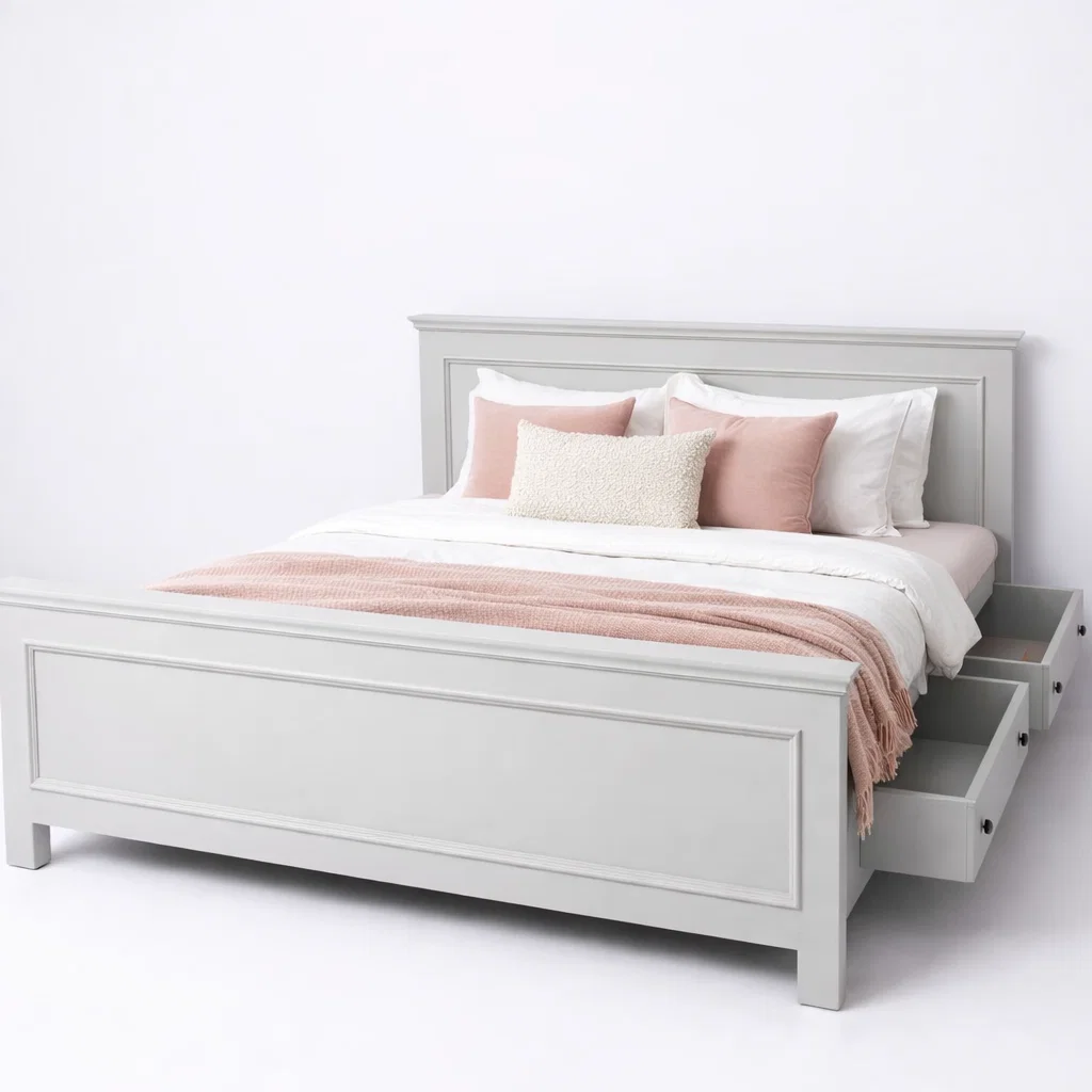 Pat din lemn masiv, stabil și durabil, cu sertare pentru depozitare. Alege culoarea dorită din paletar și menționează codul la finalizarea comenzii în câmpul „Observații” (ex: Cod culoare 12). Te vom contacta pentru confirmare.