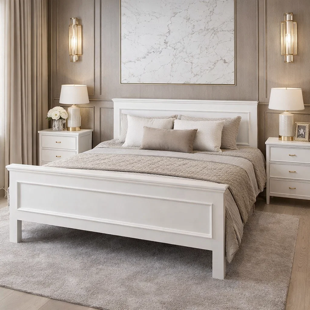Patul matrimonial Sierra 180x200 cm din lemn masiv de pin este un pat king size destinat utilizării zilnice în dormitoare matrimoniale spațioase. Este compatibil cu saltea standard 180x200 cm (salteaua nu este inclusă) și este realizat integral din lemn natural, oferind stabilitate și rezistență în timp. Construcția solidă îl recomandă pentru utilizare pe termen lung, fără deformări sau instabilitate.