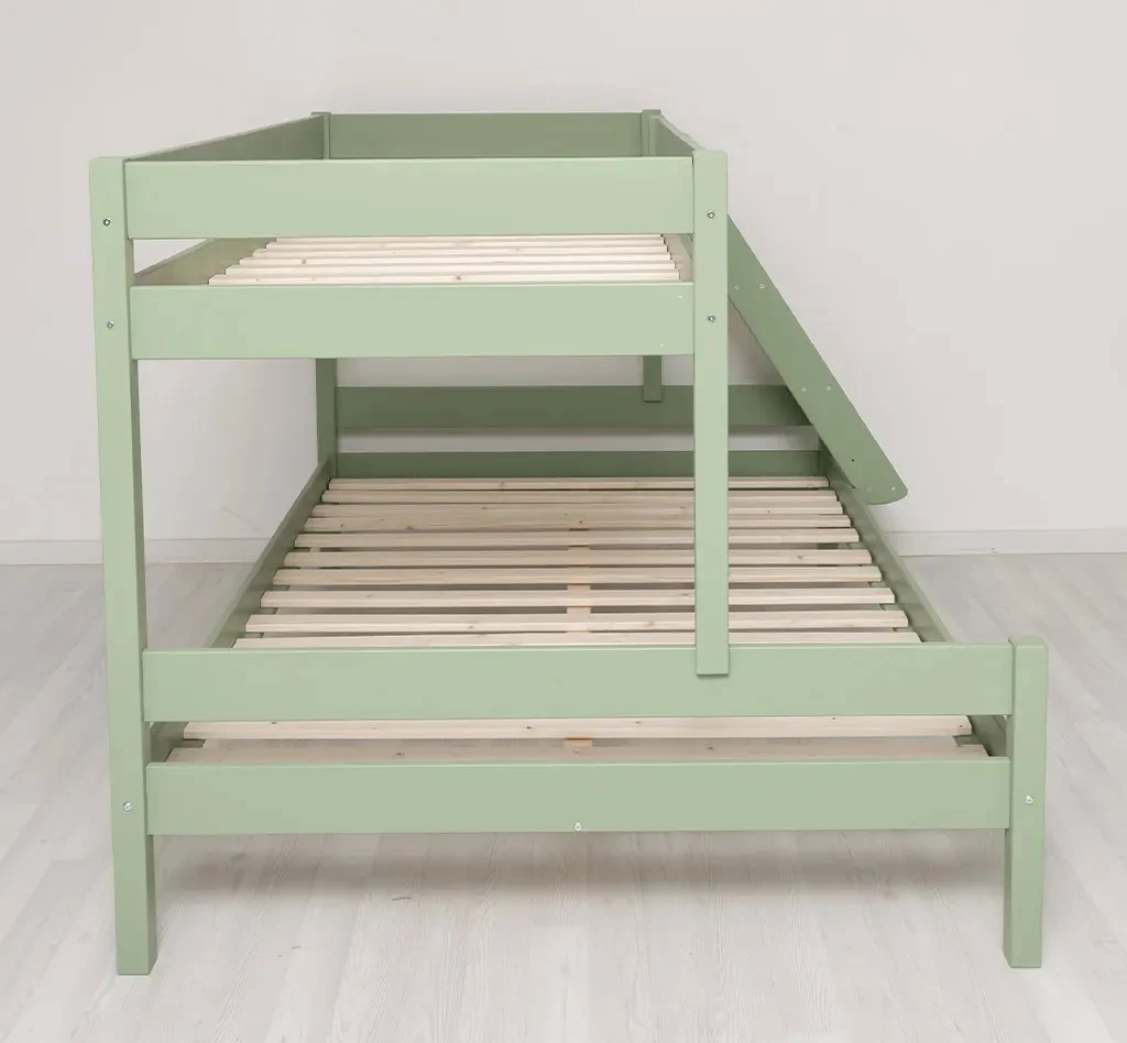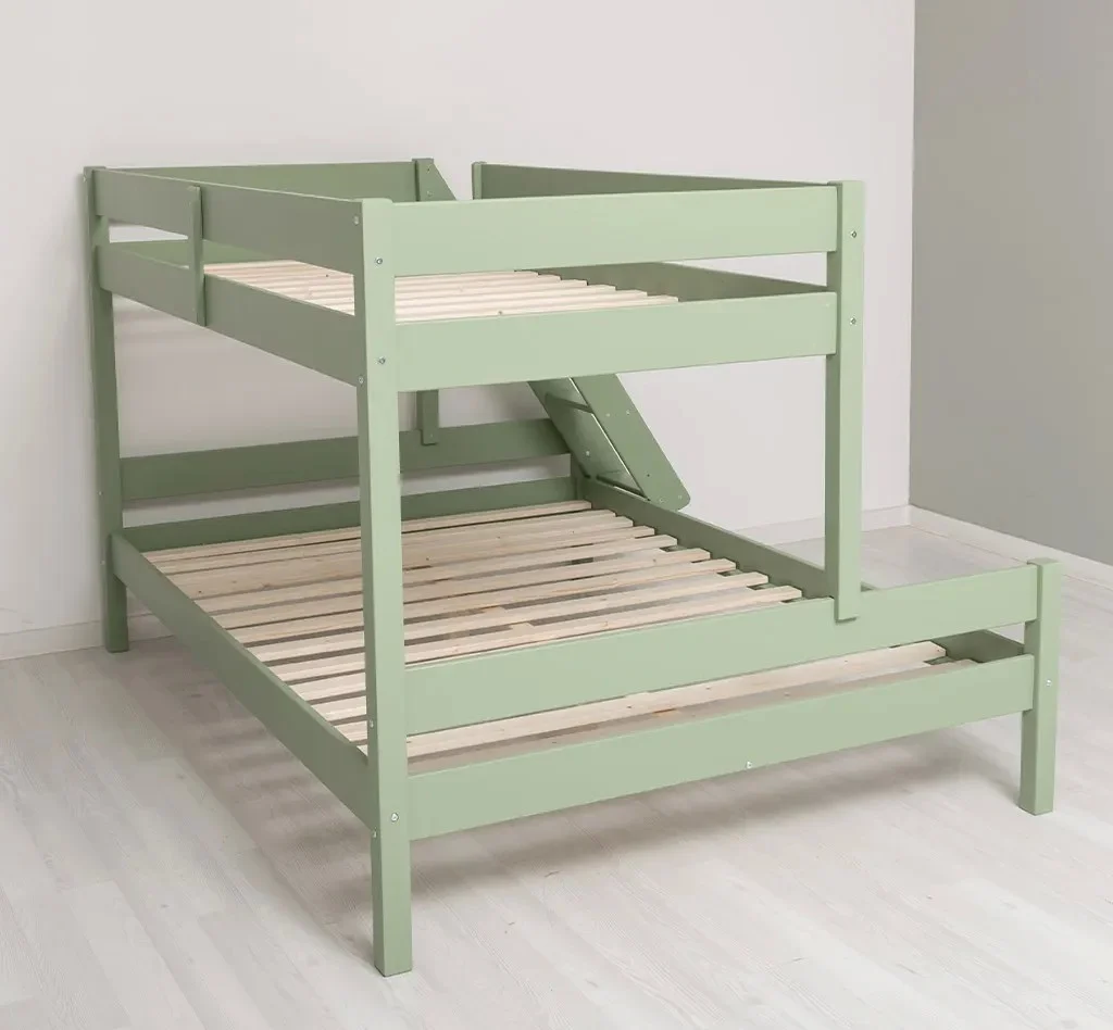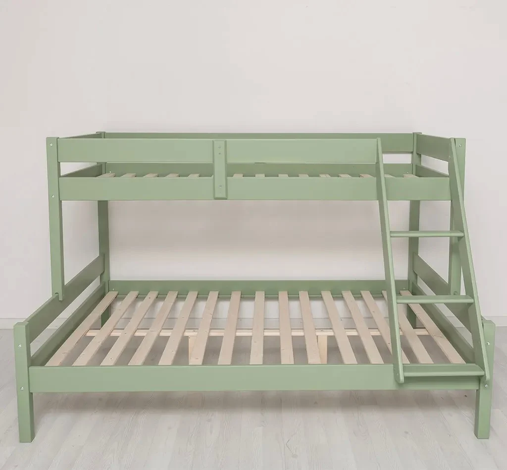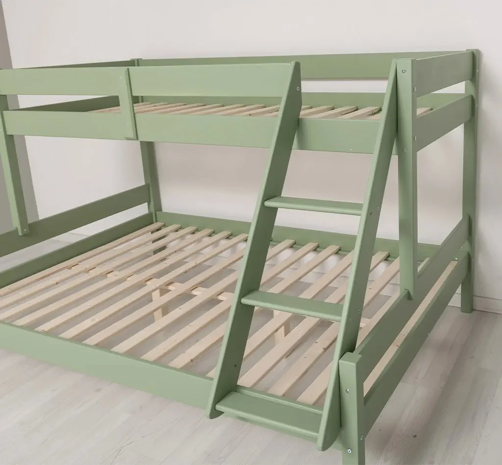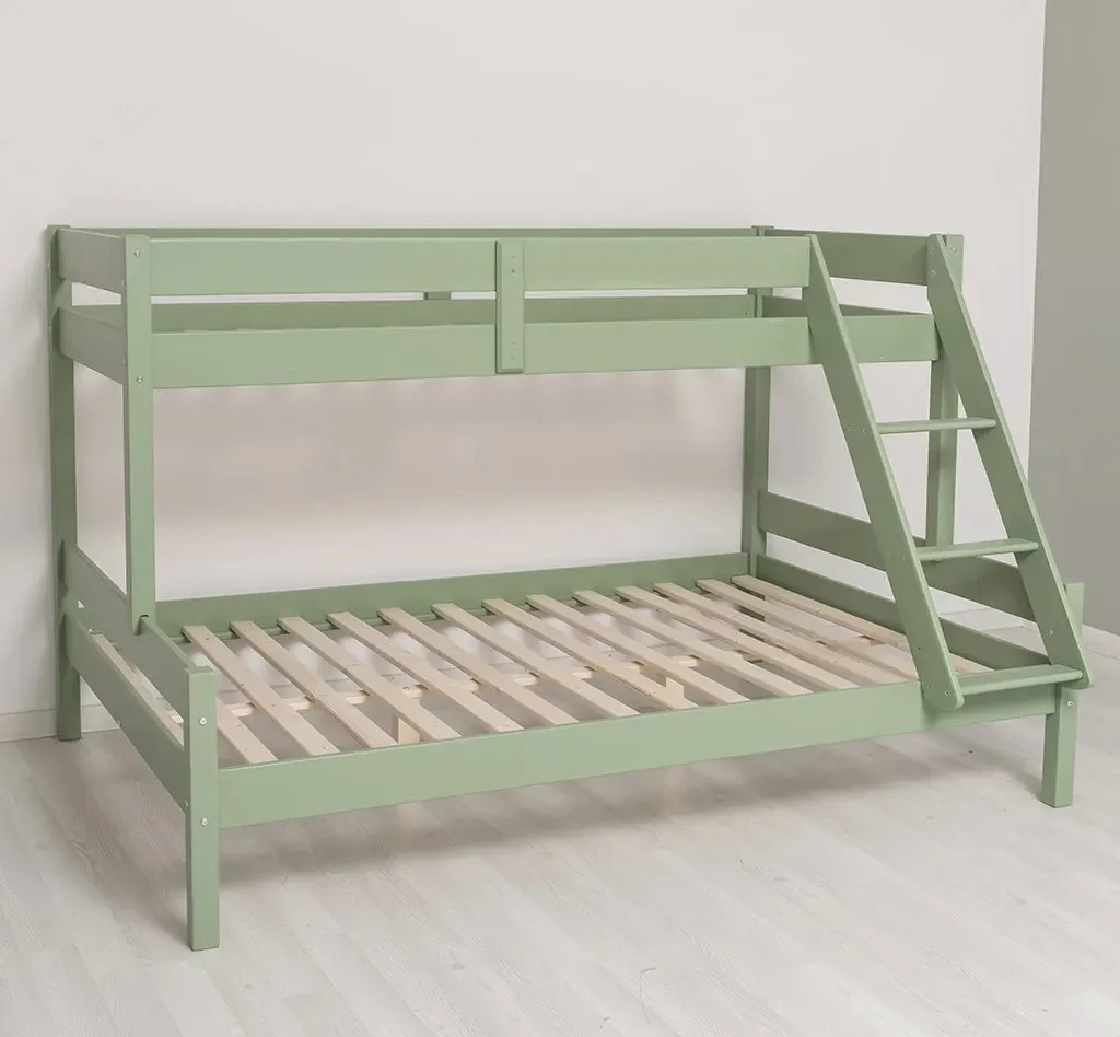 Patul Twinny supraetajat pentru 3 persoane din lemn masiv de brad 90/140x200 cm este o soluție practică și durabilă pentru optimizarea spațiului într-o cameră. Construit din lemn natural, acesta oferă două zone de dormit: pat superior de 90x200 cm și pat inferior de 140x200 cm, fiind ideal pentru copii, adolescenți sau spații de cazare.