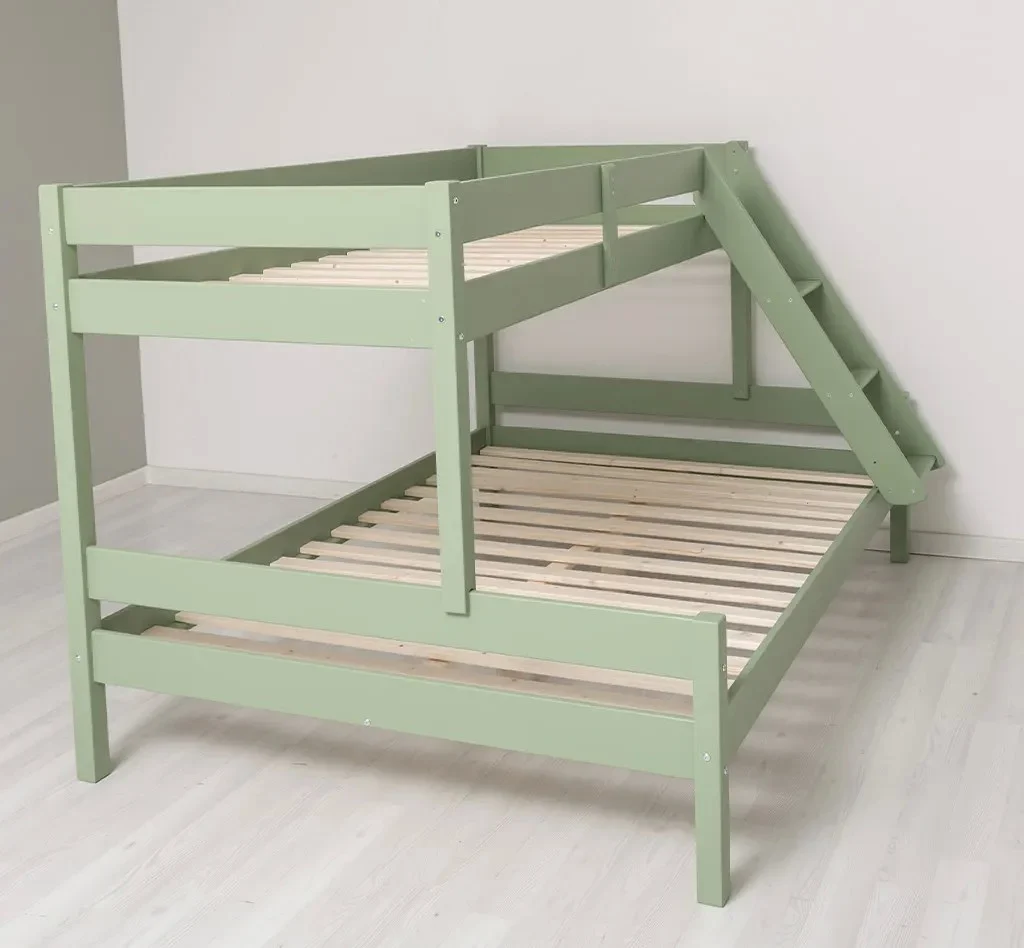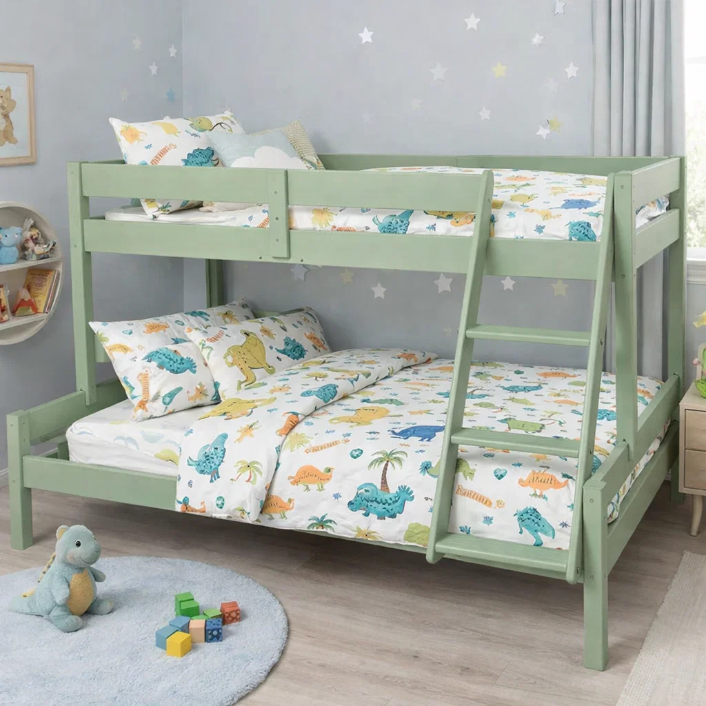 Patul dispune de o scara integrata si protectii laterale, asigurand siguranta copiilor in timpul somnului.