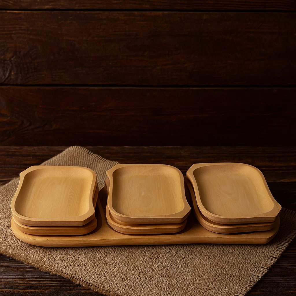 Set 6 Farfurii + Platou Lemn de Fag pentru Servire – Eleganță Naturală la Fiecare Masă